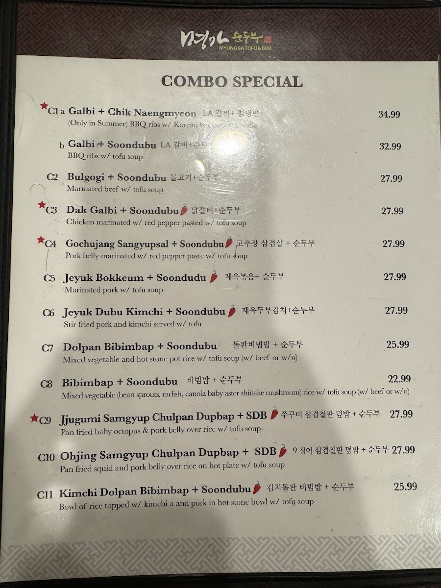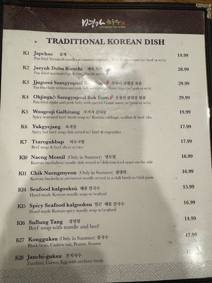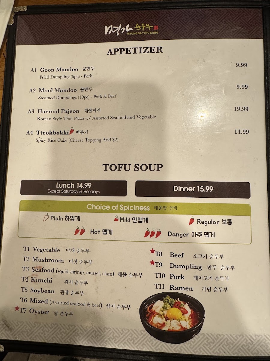 Myung Ga Tofu & bbq Menu