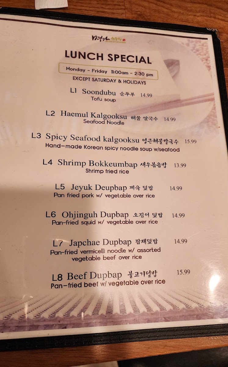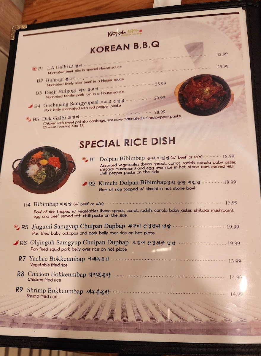 The menu at Myung Ga Tofu & BBQ offers a warm, inviting selection of Korean dishes that perfectly suit a relaxed meal with family or friends. It strikes a balance between comforting traditional favorites and hearty barbecue options, making it ideal for both casual lunches and leisurely dinners.